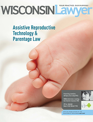 May 8, 2017 – The print May Wisconsin Lawyer is now hitting mailboxes. But why wait? With assistive reproductive technology outpacing Wisconsin parentage law, explore a possible solution to resolve disputes and grant parent status. Wondering how today’s juvenile courts are functioning on the 50th anniversary of In re Gault? Thinking about taking on a securities case, but worry your individual-investor client may be facing insurmountable odds? Here’s an overview of what you’ll find in this issue.