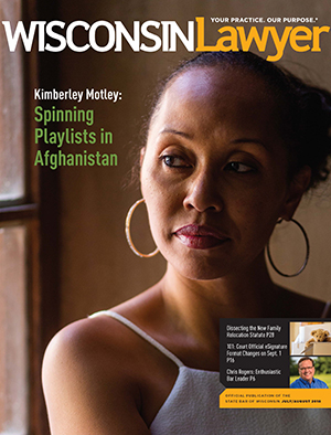 Kimberley Motley is the only foreign lawyer practicing in Afghanistan. Why does she do it? A new law affects divorcing parents who want to relocate with children. The new EU Privacy Law affects Wisconsin lawyers and clients, really. The July/August Wisconsin Lawyer looks at these and other matters.